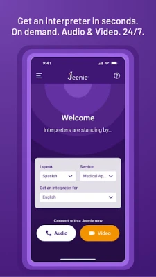 Jeenie’s innovative approach to mobile interpreting is solving the world’s modern communication problems. Jeenie’s Direct To Interpreter platform (DTI) connects clients to a live, qualified interpreter over video or audio in seconds. No need to purchase additional equipment - the platform is built to work on devices you already own, including your smartphone. That means Jeenie interpreters can go where you go...24/7.